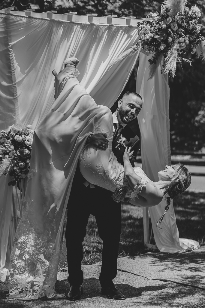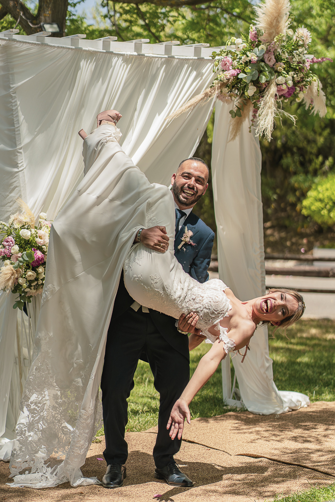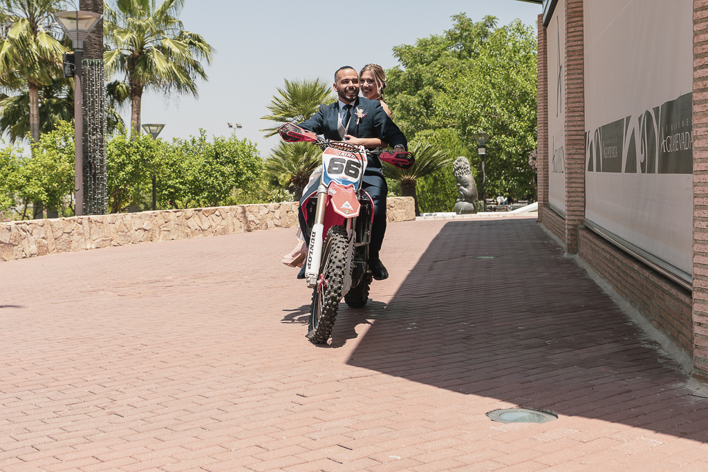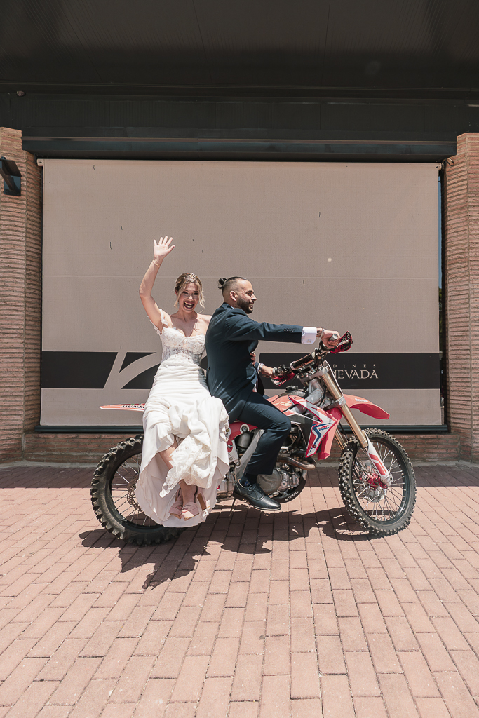 Una boda peculiar y genuina, la de Loly y Jairo que, tras darse el sí quiero aparecieron tanto ellos como sus peques en sus motos para llegar al banquete.